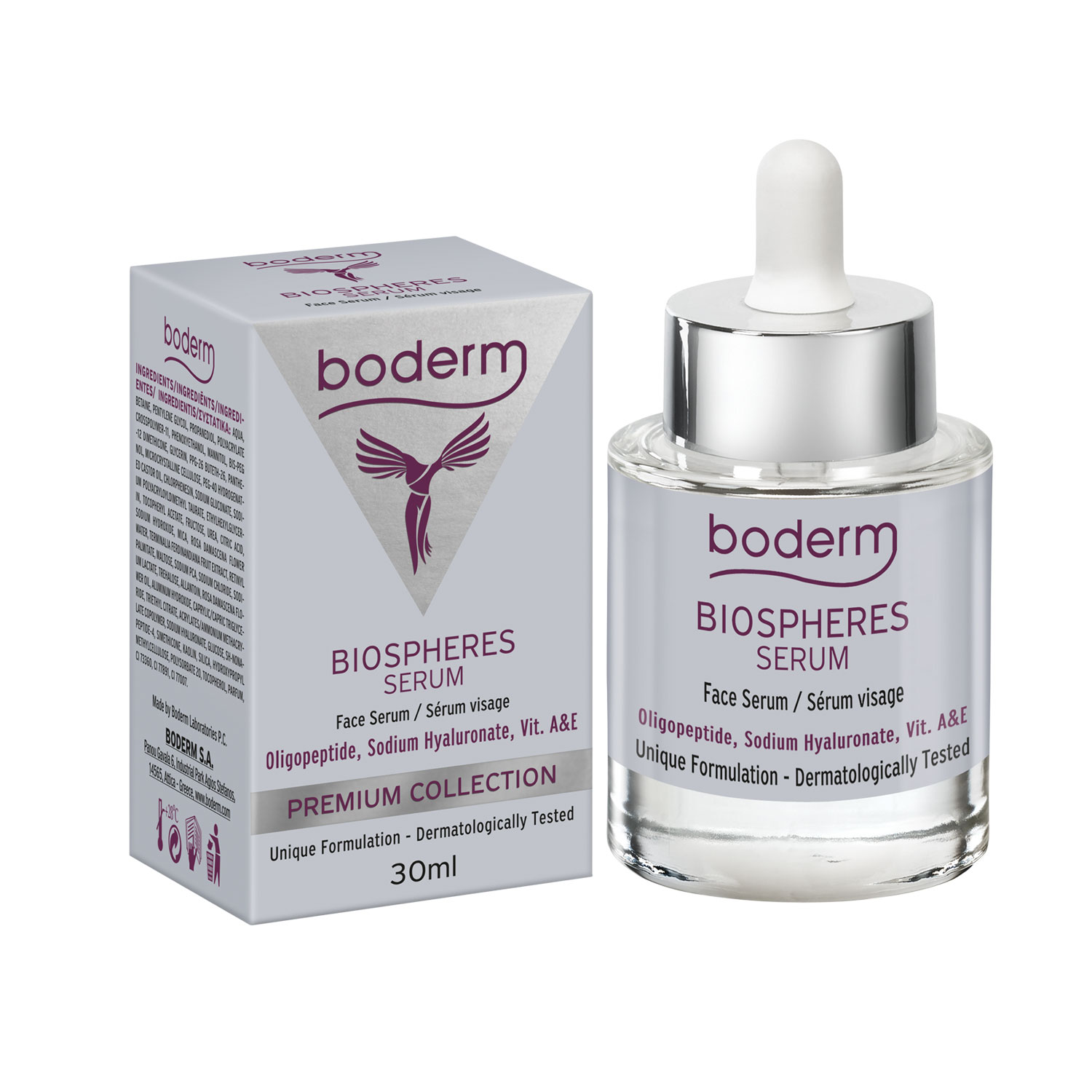 Boderm Biosphären-Serum ist ein Serum mit Mikrokugeln der Vitamine A & E für die tägliche Pflege und den antioxidativen Schutz der Gesichtspartie und des Halses, geeignet für alle Hauttypen. Enthält natürliche Wirkstoffe Hydratation wie: