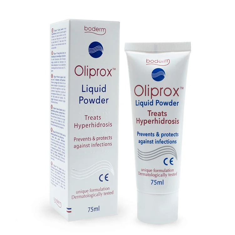 OLIPROX™ Flüssiges Pulver ist ein wirksames, nicht-invasives Medizinprodukt zur Bekämpfung von Hyperhidrose und möglichen Folgeinfektionen.OLIPROX™ Flüssiges Pulver behandelt Hyperhidrose der Handflächen, Achselhöhlen und Fußsohlen (bekannt als Fußpilz), beugt vor und schützt vor Infektionen.